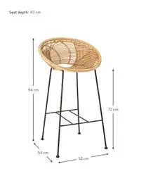 Bloomingville Rattan-Barstuhl Yonne Mit Metall-Beinen