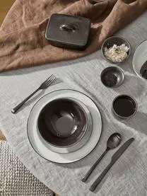 Die Geschirrserie Nordic Coal von Broste Copenhagen präsentiert sich in dunklen Tönen, die je nach Lichteinfall variieren können. Sie ist inspiriert von der Kraft der schönen skandinavischen Natur und all ihren schönen, rauen Materialien. So passt die Geschirrserie perfekt in ein gemütliches Zuhause im nordischen Stil.