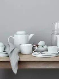 Die Geschirrserie Salt von Broste Copenhagen verzaubert mit ihrem rustikalem Handmade-Look. Die weiße Glasur des elegant geformten Geschirrsets von Broste Copenhagen ist von natürlichem Mineralsalz inspiriert. Der dezente, schwarze Rand wird händisch aufgetragen.