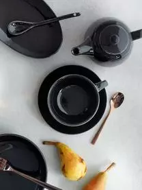 Die Geschirrserie Nordic Coal von Broste Copenhagen präsentiert sich in dunklen Tönen, die je nach Lichteinfall variieren können. Sie ist inspiriert von der Kraft der schönen skandinavischen Natur und all ihren schönen, rauen Materialien. So passt die Geschirrserie perfekt in ein gemütliches Zuhause im nordischen Stil.