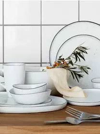 Die Geschirrserie Salt von Broste Copenhagen verzaubert mit ihrem rustikalem Handmade-Look. Die weiße Glasur des elegant geformten Geschirrsets von Broste Copenhagen ist von natürlichem Mineralsalz inspiriert. Der dezente, schwarze Rand wird händisch aufgetragen.