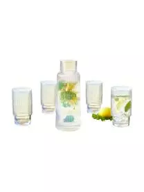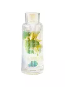 Mit unserer Wasserkaraffe Minna wird es auf dem Tisch im Handumdrehen glamourös! Wir lieben die Kombination aus irisierender Oberfläche und wunderschönem Rillenrelief, die jedes Getränk zu etwas Besonderem macht.