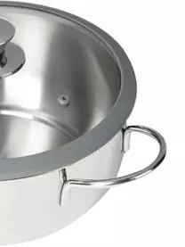 Der Kochtopf mit Deckel und 2 Silikon-Topfhalter ist für alle Herdarten inklusive Induktion geeignet.