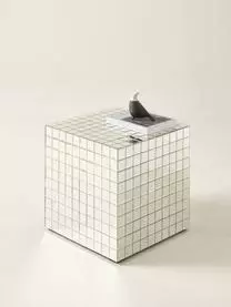 Der würfelförmiger Beistelltisch mit dekorativem Spiegelmosaik verleiht jedem Raum das gewisse Etwas. Er macht sich gut als Tisch neben dem Sofa, wirkt aber auch für sich allein mit einer schönen Pflanze oder Deko darauf.