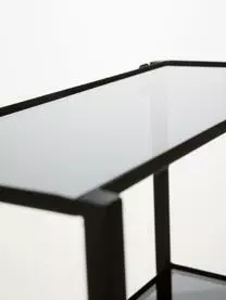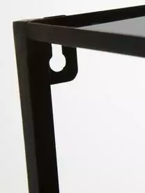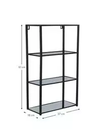 Wandregal aus pulverbeschichtetem Metall mit Böden aus rauchfarbenem Glas. Schickes, geradliniges Modell mit Löchern zur Wandbefestigung.