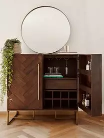 Dieses Sideboard aus MDF mit Eschenfurnier zeigt sich wahlweise schwarz lackiert oder mit einem klaren Lackfinish, das die Maserung gut zur Geltung bringt. Die beiden Türen haben eingefräste Längsrillen, die für einen Streifeneffekt sorgen. Dank der Push-Funktion lassen sie sich mühelos öffnen und schließen, und die Front bleibt clean und glatt. Da das Modell an der Wand hängt, ist es überaus ansprechend und zugleich praktisch. Nur dein Geschmack entscheidet über die Montagehöhe des Schranks, und darunter lässt es sich mühelos sauberhalten. Auch als TV-Bank sehr zu empfehlen, denn damit kannst du die ideale Höhe für deinen Fernseher wählen. Hinter den Türen verbirgt sich jeweils ein Einlegeboden. Solltest du den Schrank als Medienmöbel nutzen wollen, ist auf der Rückseite eine Öffnung für die Kabel vorhanden.