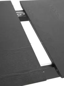 – Der Tisch kann um 40 oder um 80 cm verlängert werden, indem die beiden Tischhälften auseinandergezogen werden und die im Tisch integrierten Verlängerungsplatten in der Mitte montiert werden.