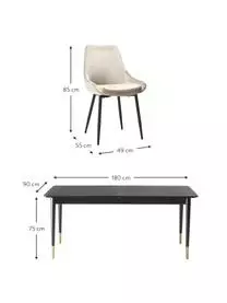 – 5-tlg. Set bestehen aus ausziehbarem Esstisch und 4 Samt-Polsterstühlen