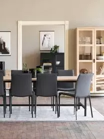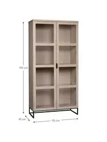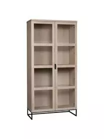 Die Vitrine verfügt über vier Fächer. Die Einlegeböden sind höhenverstellbar und werden dadurch Ihren individuellen Bedürfnissen gerecht. Die Türen verfügen über einen Soft-Close Mechanismus und lassen sich somit geräuschlos schließen.