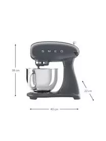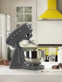Die vollfarbigen Smeg-Küchenmaschinen im Stil der 50er Jahre sind die ideale rechte Hand in Ihrer Küche – leistungsstark, vielseitig und inspirierend zugleich. Die Küchenmaschine mit 10 Geschwindigkeitsstufen, Planet-Rührwerk und Direkt-Drive Motor gewährleistet ein sanftes, leises und perfektes Vermengen der Zutaten. Das umfangreiche Zubehör (Edelstahl-Quirl mit flexiblen Rührkanten, Schneebesen, Flachrührer, Knethaken, Spritzschutz-Einfüllhilfe, Schüssel) unterstützt Sie bei jedem Rezept.