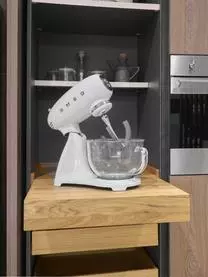 Die vollfarbigen Smeg-Küchenmaschinen im Stil der 50er Jahre sind die ideale rechte Hand in Ihrer Küche – leistungsstark, vielseitig und inspirierend zugleich. Die Küchenmaschine mit 10 Geschwindigkeitsstufen, Planet-Rührwerk und Direkt-Drive Motor gewährleistet ein sanftes, leises und perfektes Vermengen der Zutaten. Das umfangreiche Zubehör (Edelstahl-Quirl mit flexiblen Rührkanten, Schneebesen, Flachrührer, Knethaken, Spritzschutz-Einfüllhilfe, Schüssel) unterstützt Sie bei jedem Rezept.