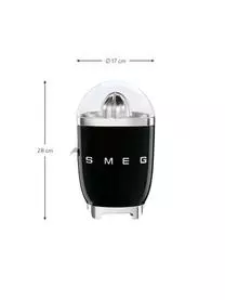 Die Smeg Zitruspresse ist mit ihrem eleganten Design ein Blickfang für jede Küche. Sie wird inklusive Filtersieb, Anti-Tropf-Auslauf mit Klappverschluss, Saftkammer und Schutzabdeckung geliefert.