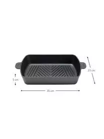 Der Bräter mit geripptem Boden erzeugt eine indirekte Hitze, wie beim Barbecue-Grill. Der Bräter ist für alle Herdarten inklusive Induktion geeignet.