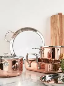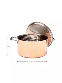 Der Kochtopf ist von Außen mit einer stylischen Kupferschicht überzogen, von Innen mit einer praktischen Doppelbeschichtung aus Aluminium und rostfreiem Strahl, wodurch die Pfanne besonders leicht zu reining ist. Dank der Kupfer- und Aluminiumschichten wird die Wärme gut geleitet, so dass sich der Topf schnell und gleichmäßig erwärmt. Der Kochtopf ist für alle Herdarten inklusive Induktion geeignet.