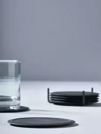 Dieses siebenteilige Untersetzer-Set besteht aus sechs Untersetzern und einer passenden Halterung.